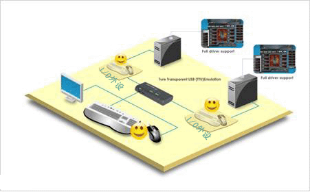 奥瑞泰克 SOHO型KVM切换器为桌面型KVM计算机切换器,支持音频与麦克风,用户可经由一组USB键盘、鼠标和一个VGA接口的屏幕(以及一组喇叭和麦克风)来控管两台或是四台支持VGA视频接口和USB键盘和鼠标接口的电脑。此机配备通透USB模拟技术(True Transparent USB,简称 TTU),支持各种USB键盘和鼠标的模拟功能,使用上不用烦恼无法模拟键鼠使用的问题。另配备主动同步复制技术(ActiveSync Replication,简称 A.S.R.),支持各种显示器设备的DDC视讯仿真,可以让您即使在各类电脑平台以及操作系统上,如Windows 7和Mac OS X,仍拥有较好影像显示兼容性,即使电脑切换频繁也能保持屏幕显示分辨率。此外,奥瑞泰克有些的机型还将配备两个USB Hub(集线器)端口,可用来连接分享用的USB设备,可以同步或异步来切换连接在这两个USB Hub 端口的I/O设备。应用方便。让我们即做到了双机物理隔离的安全效果,也提高了我们的办公效率。