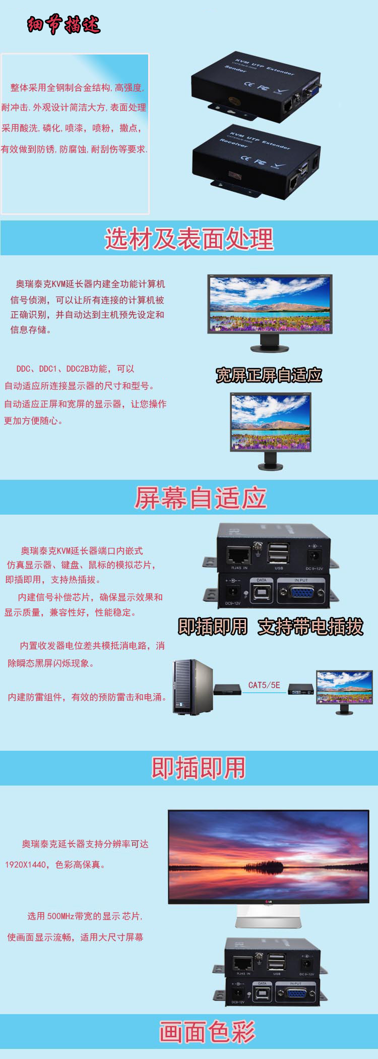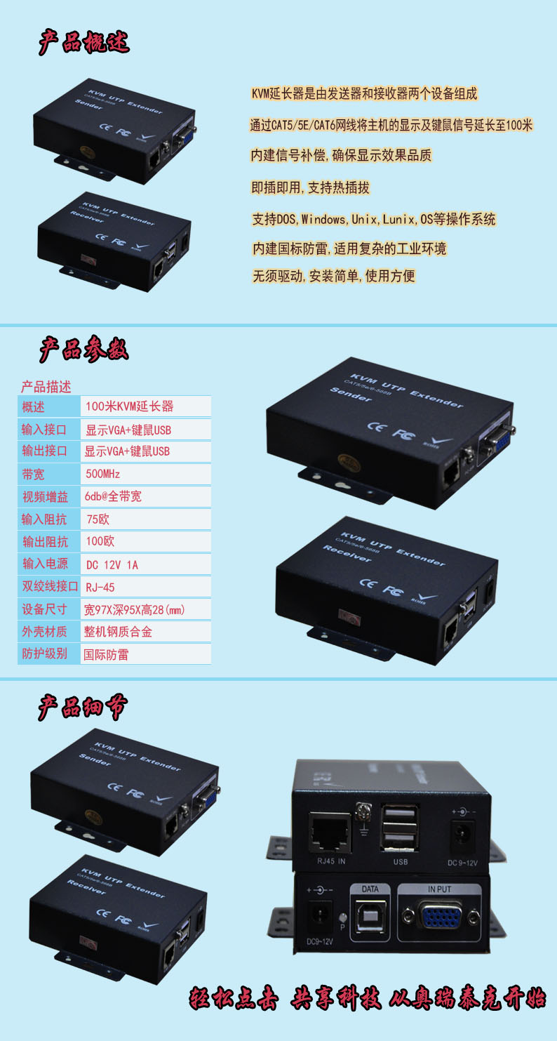 描述:100米双绞线KVM延长器