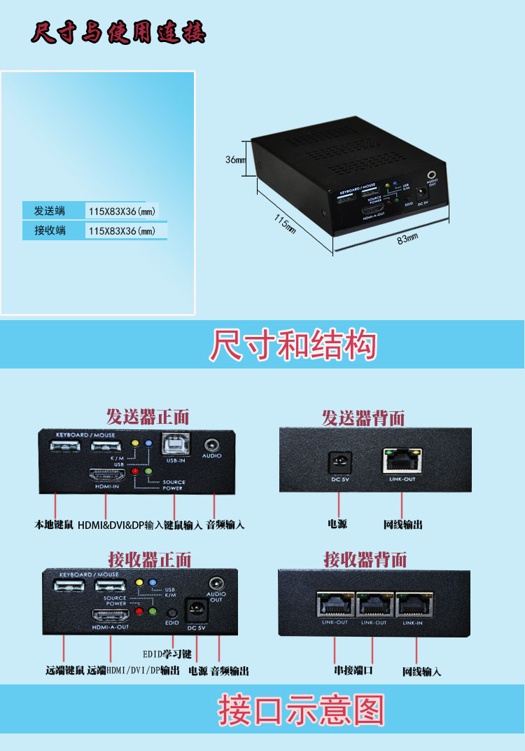 接口:输入DVI&HDMI&DP+USB 输出DVI&HDMI&DP+USB