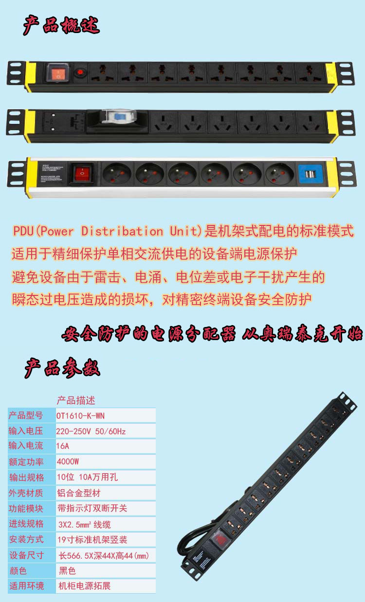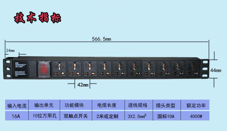 描述:10位16A万用机架式PDU