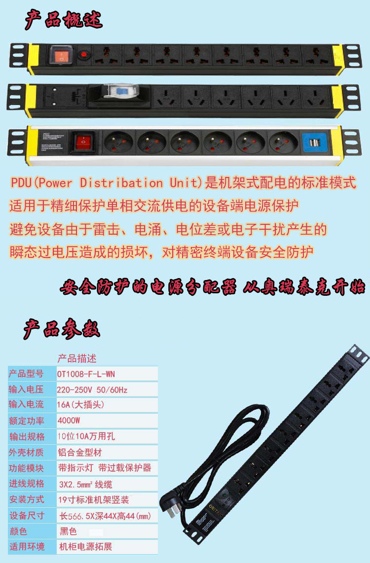 描述:10位16A防雷机架式PDU