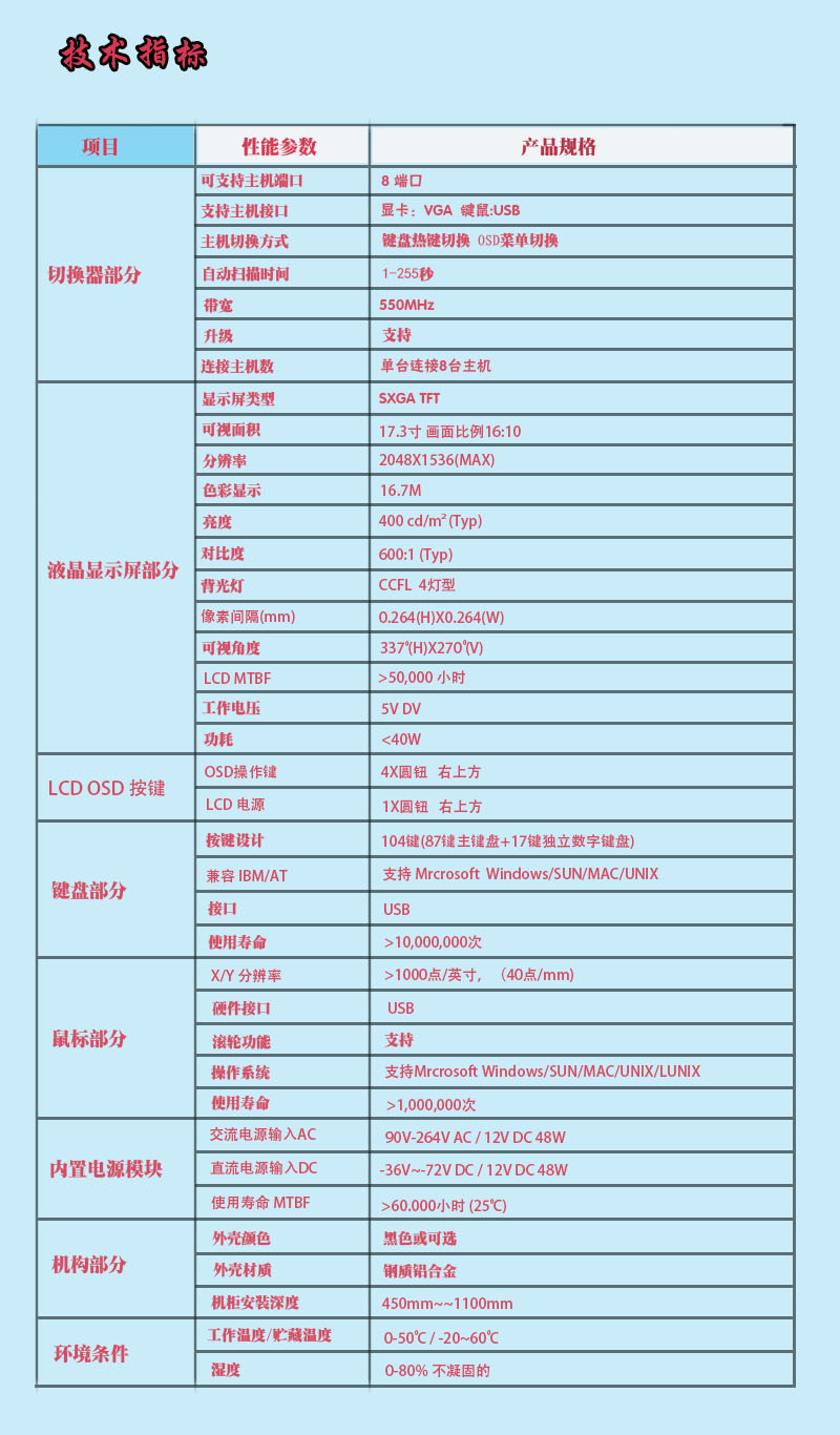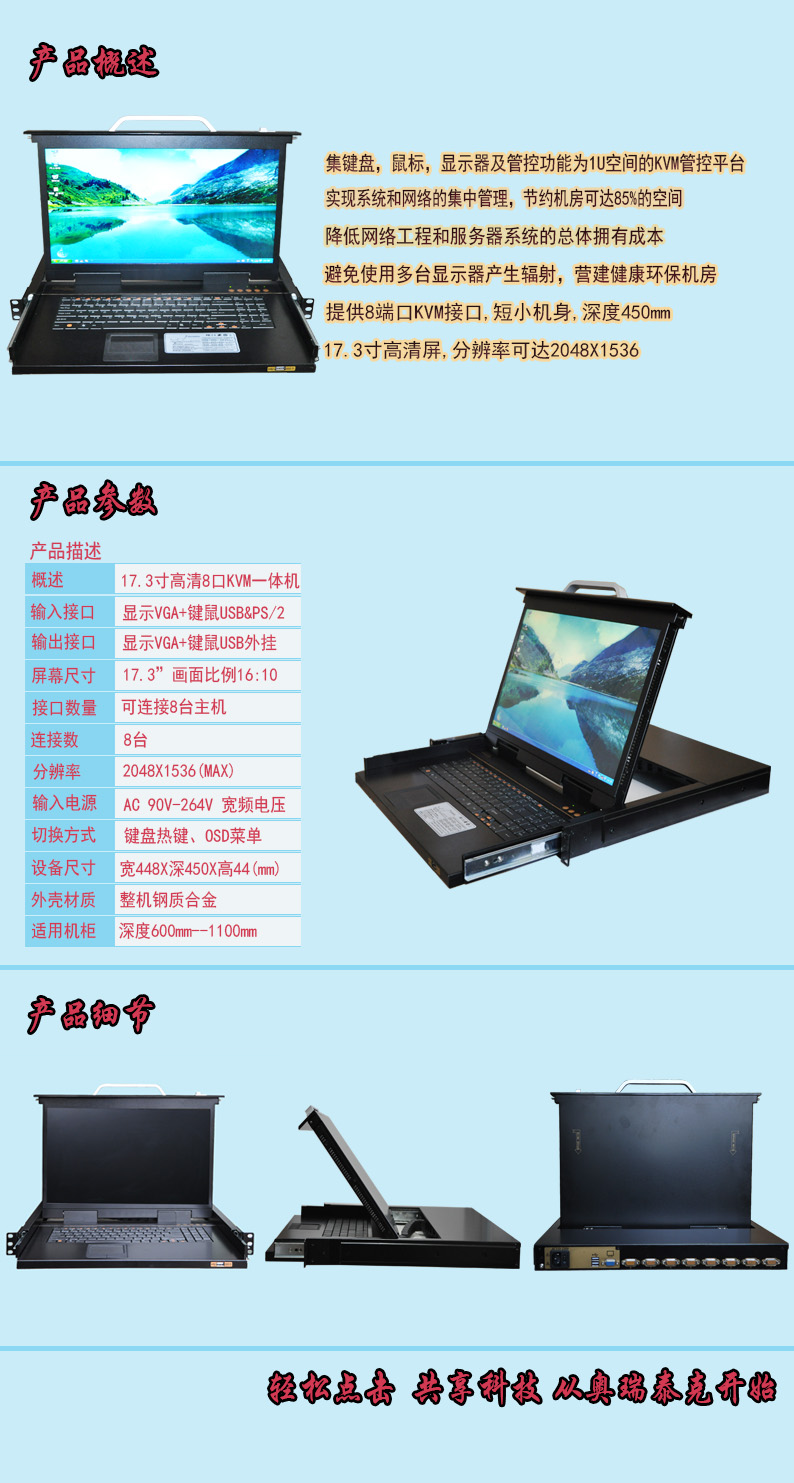 描述:17.3寸8口高清LED KVM一体机